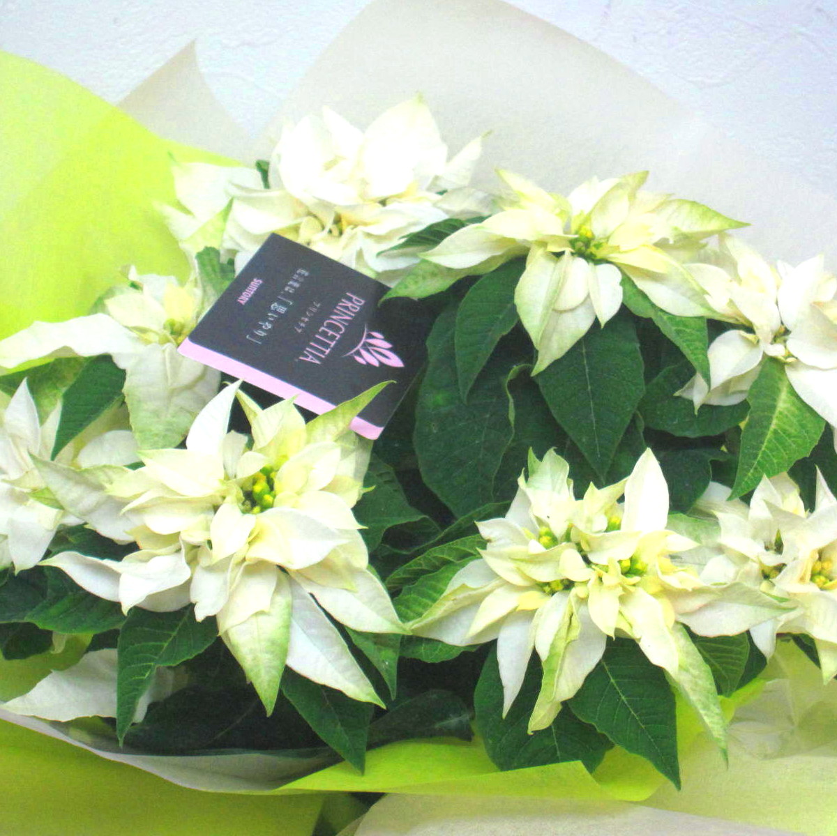 〈数量限定〉色々なギフトのシーンで大人気のポインセチアの新品種・プリンセチア(ピュアホワイト)【15時迄のご注文で翌日届きます】※こちらの商品についてのご相談、ご質問等ございましたら(メール)または(お電話)にて承ります。