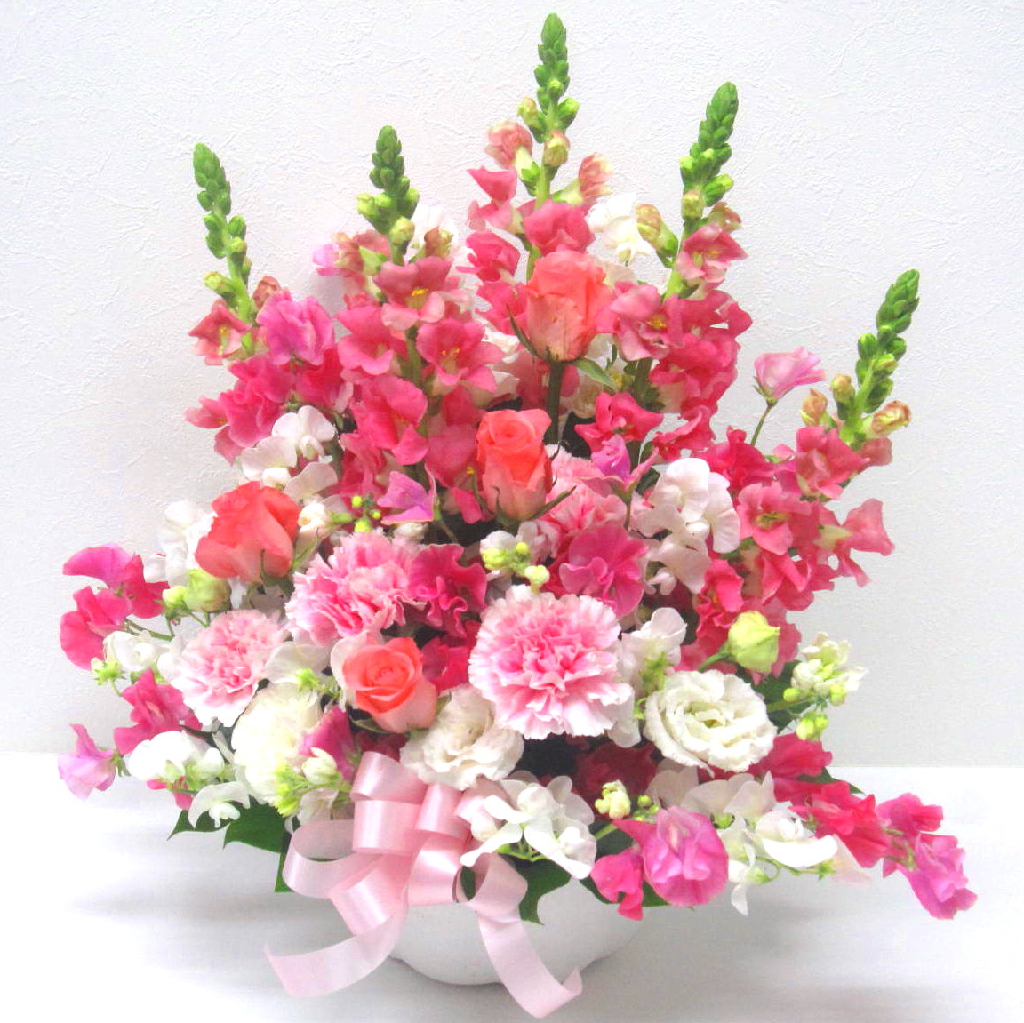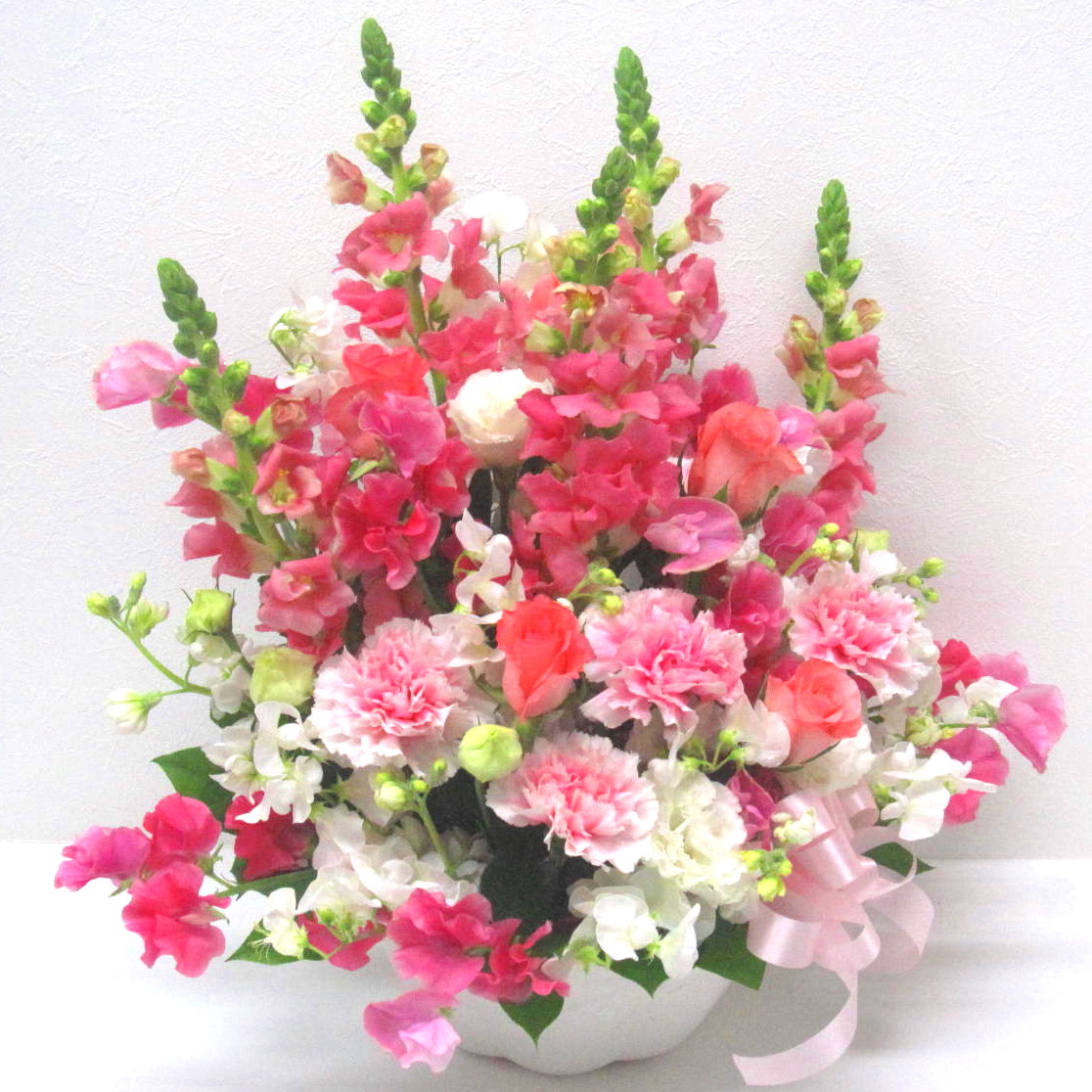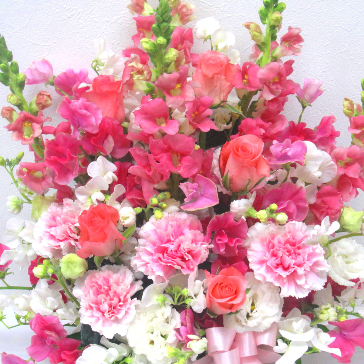 花材: メイン スイートピー、バラ、カーネーション、トルコギキョウなど その他 季節のお花、葉物類など