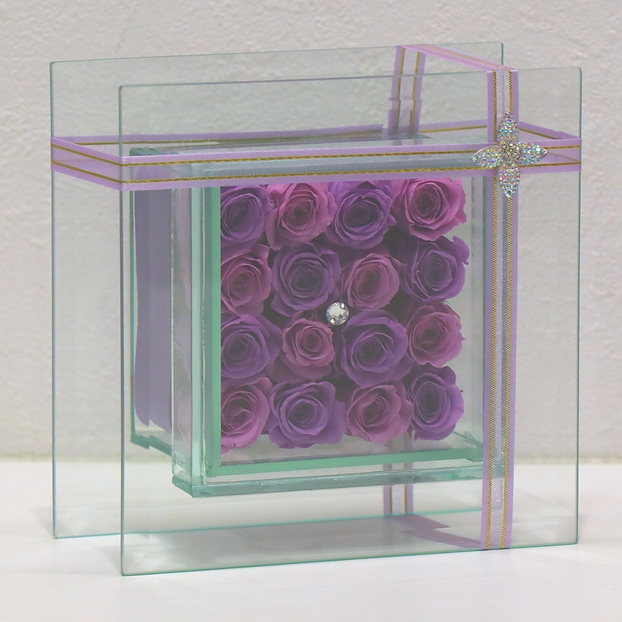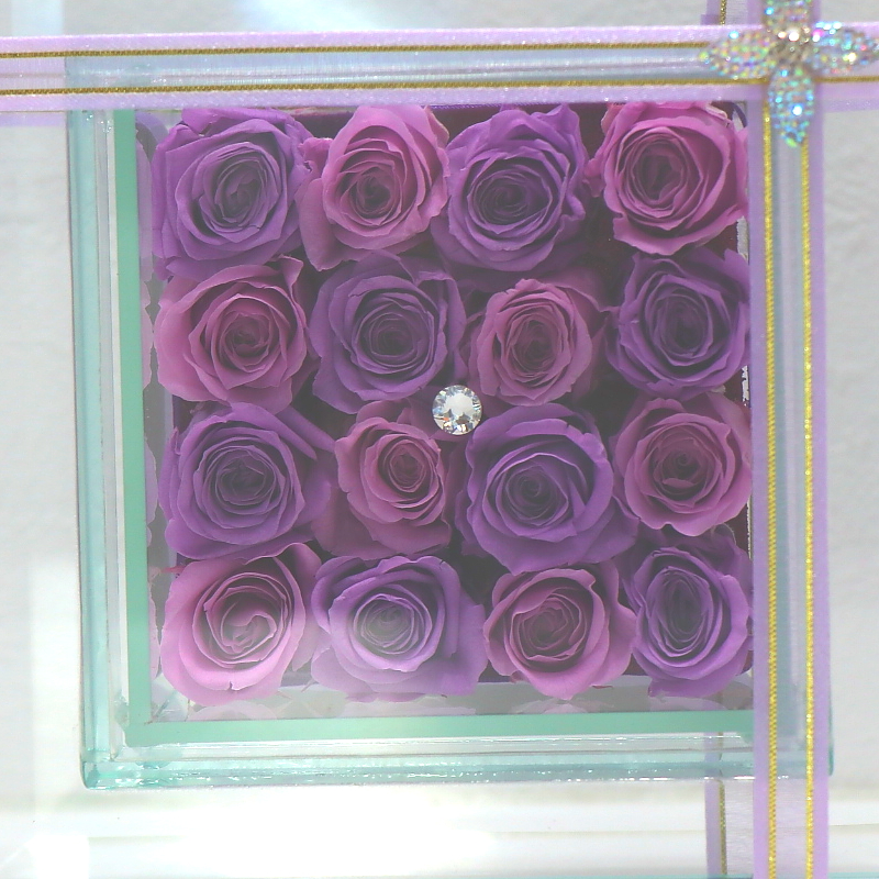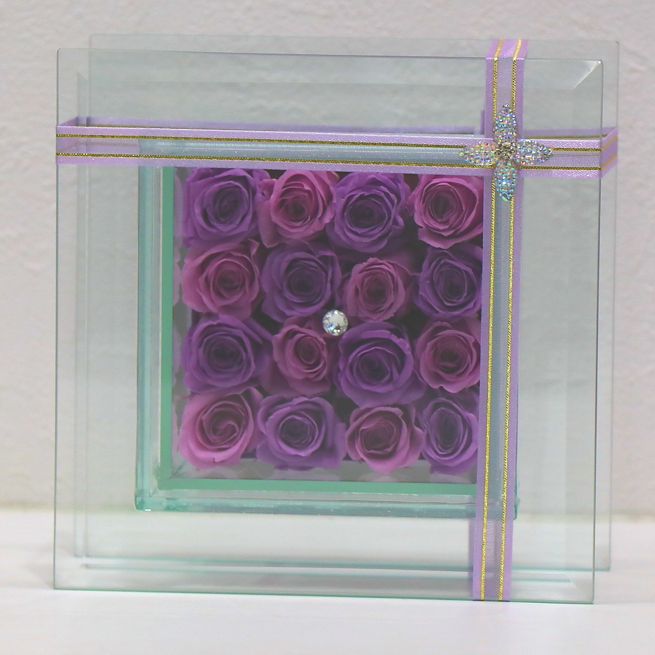 とても素敵な透明感のプリザーブドフラワー。スワロフスキーがガラスフレームとパープル系のプリザーブドローズを引き立てます。お誕生日や記念日はもちろん、古希や喜寿のお祝いなど紫カラーでピッタリです!大人気の為、数に限りがございます。ご注文はお早めに。【15時迄のご注文で翌日届きます】※こちらの商品についてのご相談、ご質問等ございましたら(メール)または(お電話)にて承ります。