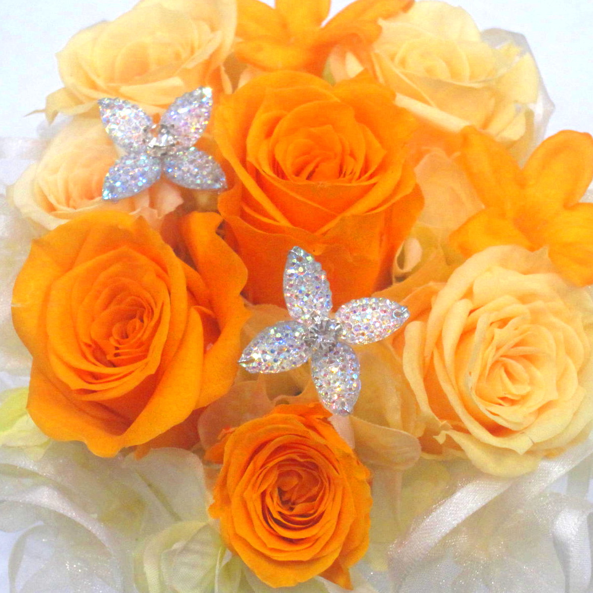 資材・ラッピング: ヨーロピアン花器、フリルリボン、ジュエルピック、クリアケース、フラワーケアカード(取扱説明書)