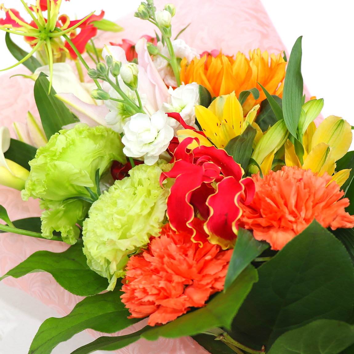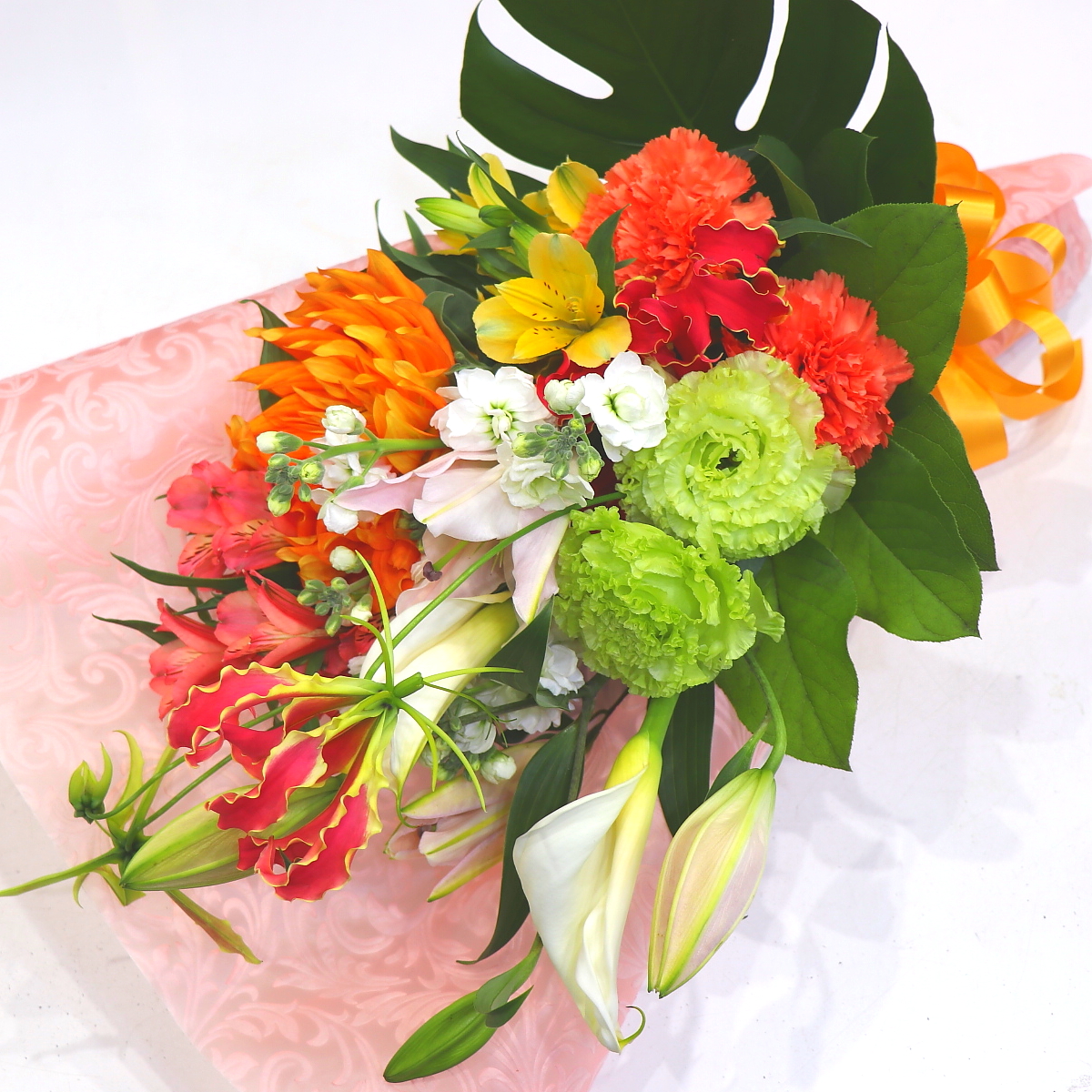 きっと送別・ご退職祝いに喜ばれる華やかな花束。明るく大切な門出を彩ってくれますよ。【15時迄のご注文で翌日届きます】※こちらの商品についてのご相談、ご質問等ございましたら(メール)または(お電話)にて承ります。