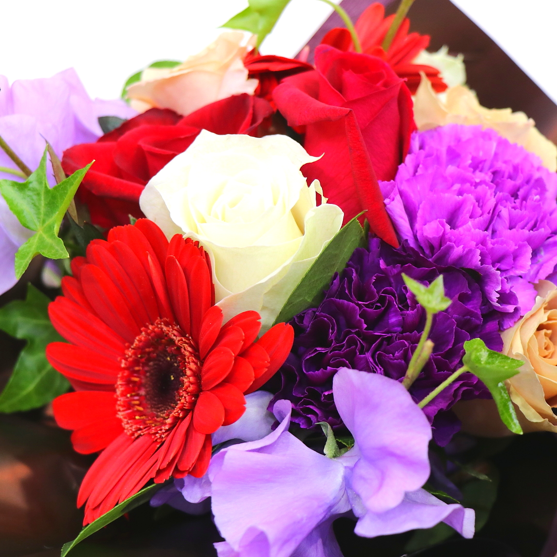 とってもシックで可愛らしいそのまま飾れる花束です。春のお花「スイートピー」を入れたシック系の落ち着きのある色合いです。きっと喜ぶこと間違いありません!中が花瓶のようなプラスチック製の形状になっておりうっかり落としても割れません。また、お花が終わってもまた何度でも再利用できますよ。持ちの良い花材を使っておりますので花持ちも良いでしょう。ご購入されたお客様から高い評価を頂いております。静岡県長泉町から日本全国【真心】込めてお届けいたします。さまざまなご用途に贈る贈り物としてオススメです。大切な方へ贈るフラワーギフトやプレゼントなら「花樹園オンラインドットコム」に是非、お任せ下さいませ。