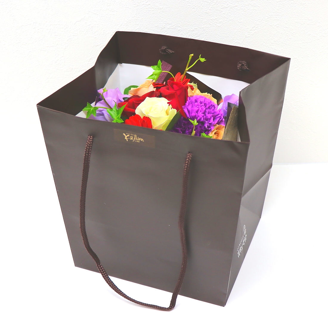 資材・ラッピング: 和紙、ラッピングペーパー、リボン、フラワーケアカード(取扱説明書)