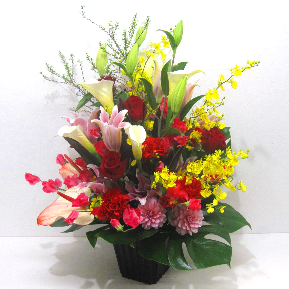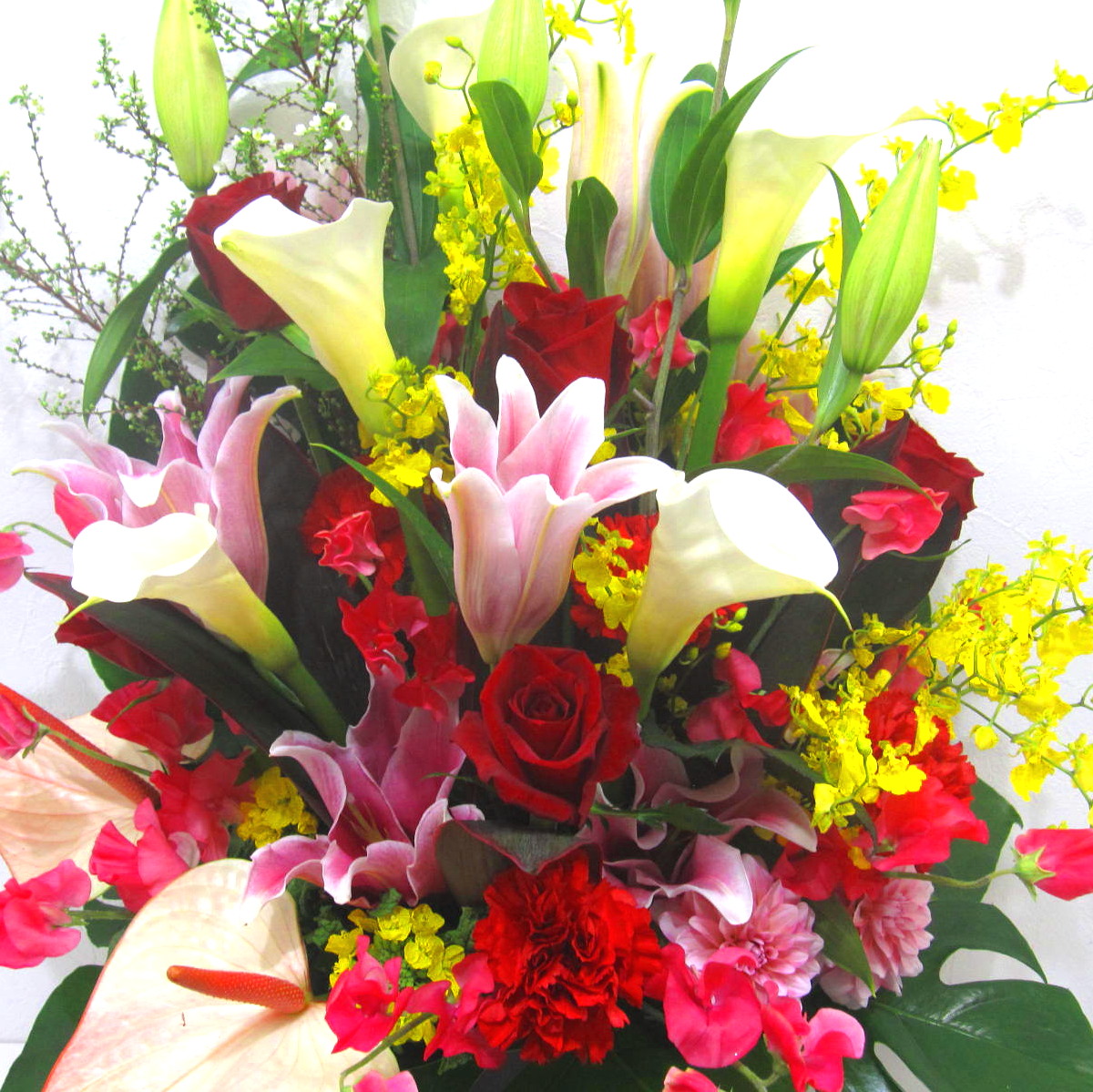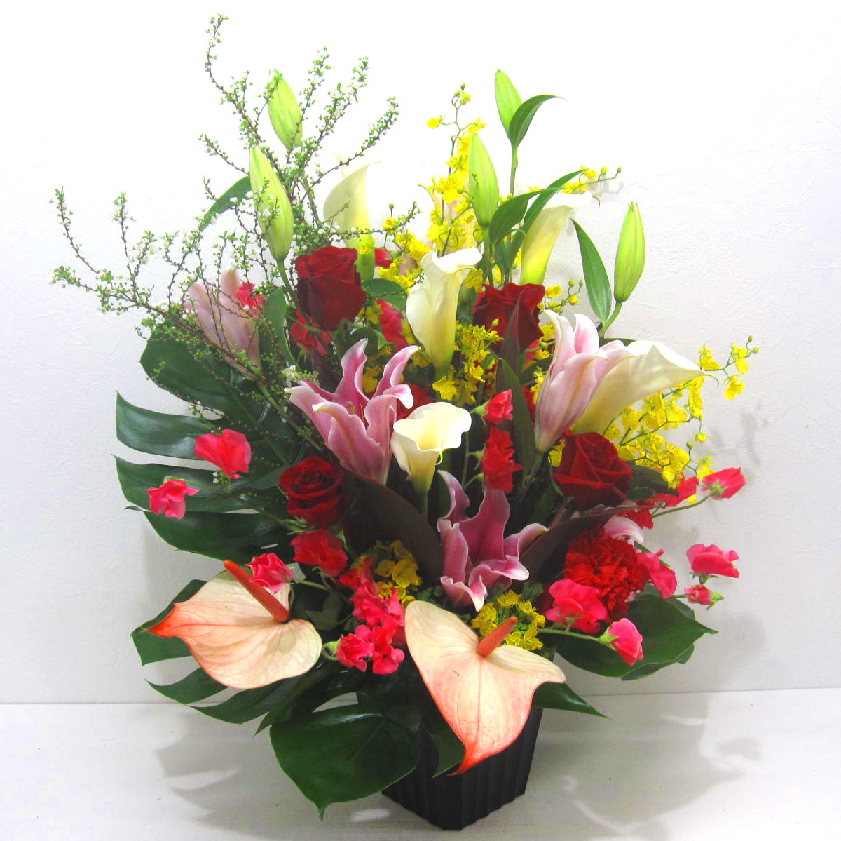 花材: メイン ユリ、バラ、カーネーション、蘭系のお花など その他 葉物類など