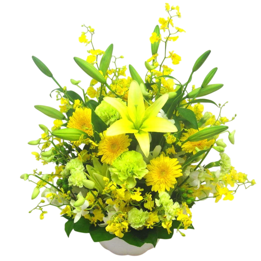 太陽のように明るいお供えアレンジメント