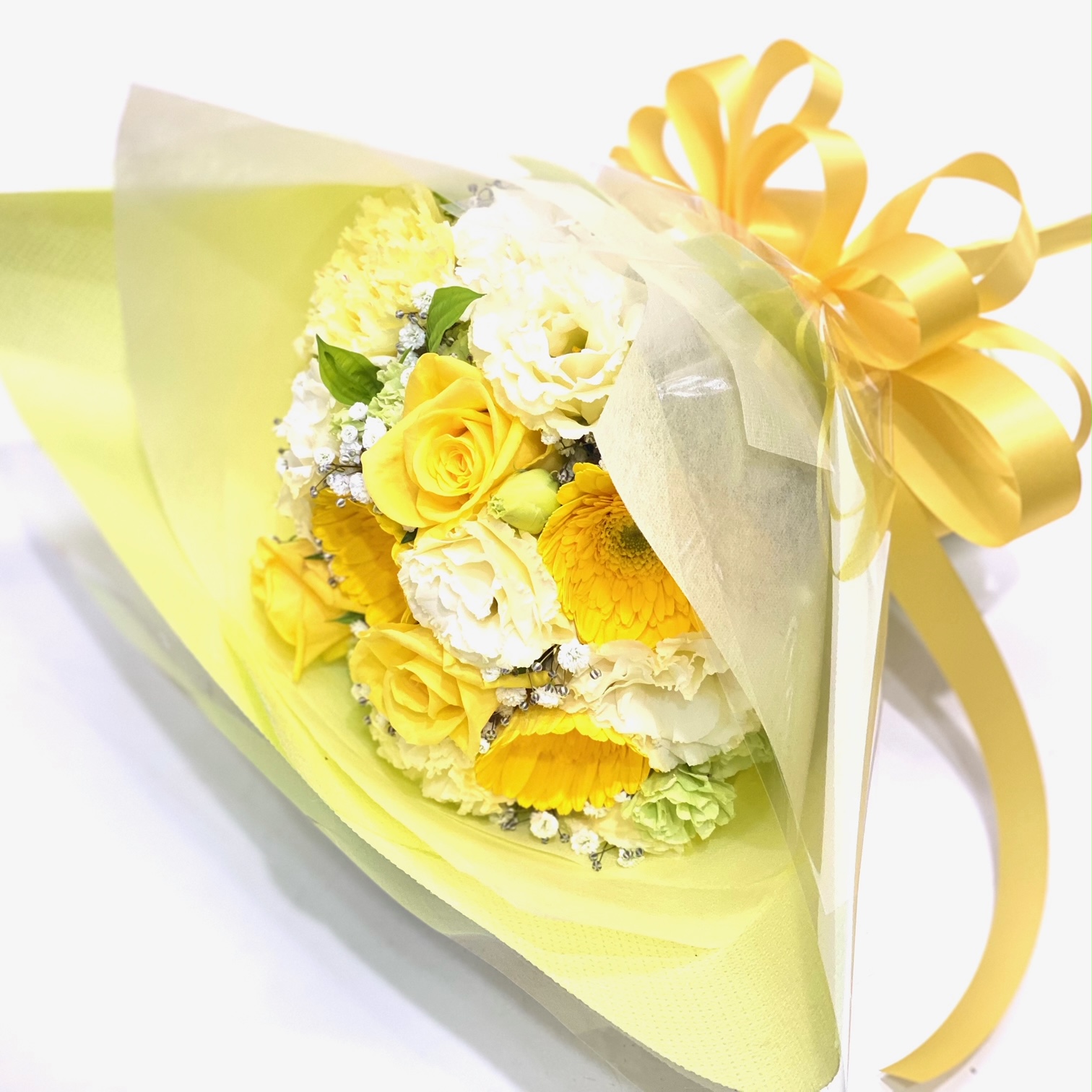黄色系の優しい色彩のブーケ風花束