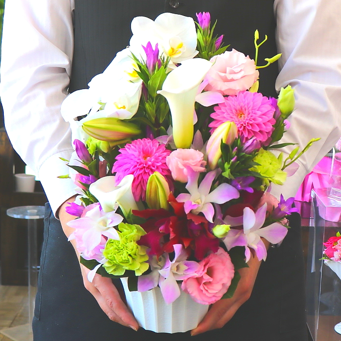 蘭系のお花を中心にまとめたメモリアルアレンジメント