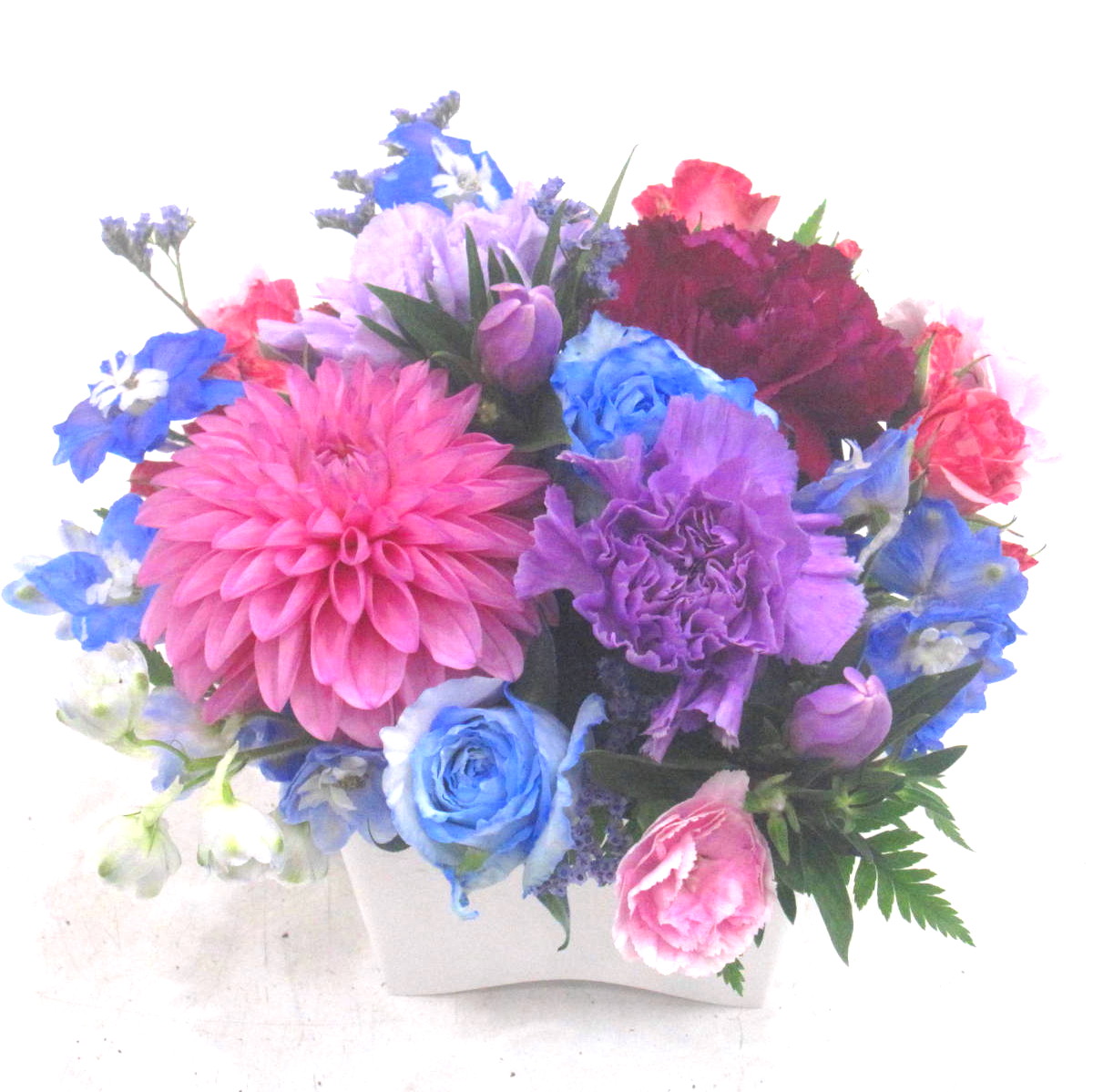 白系主体に淡い色を入れたふんわりアレンジメント