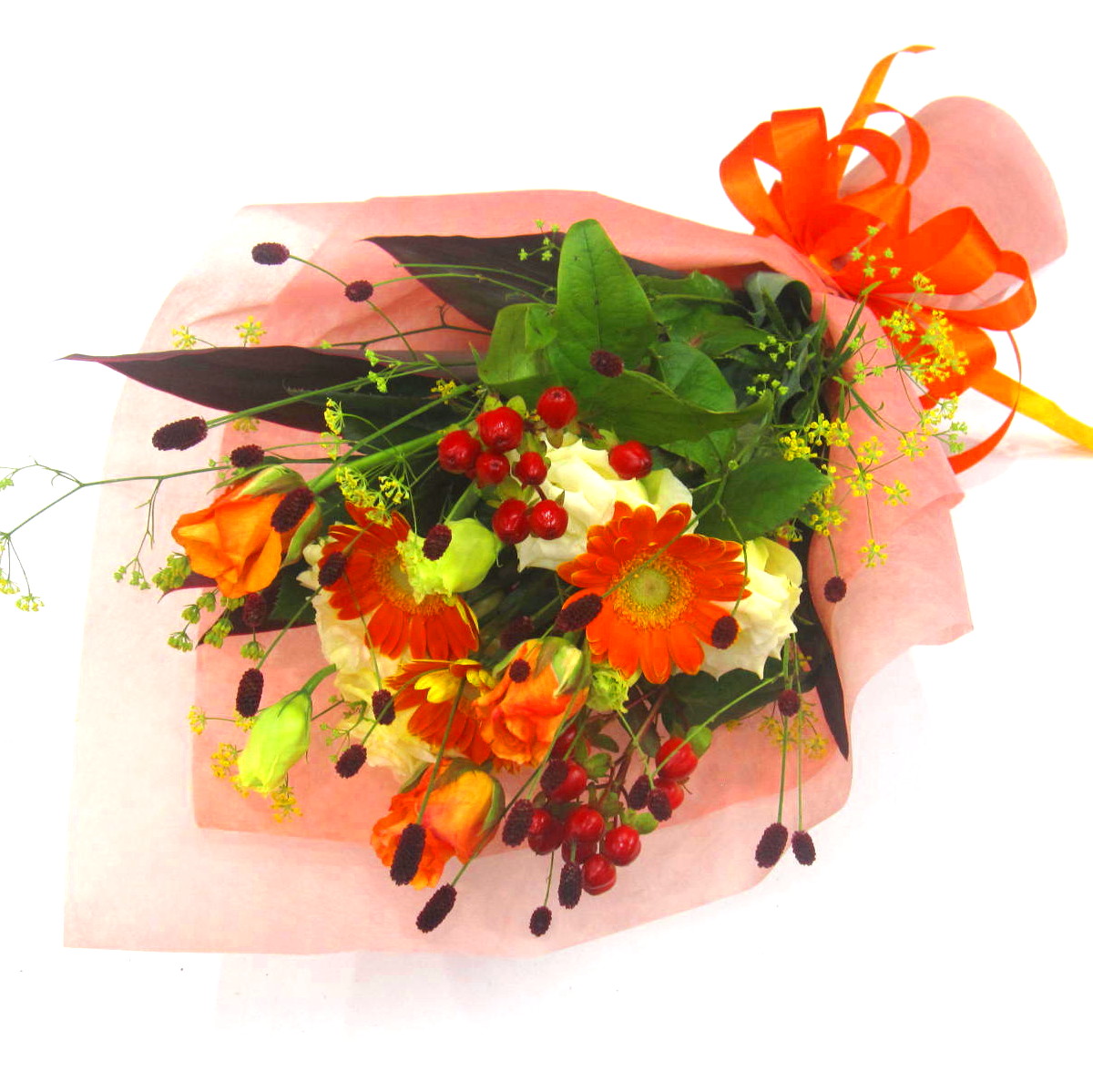 オレンジ系中心の優しい花束