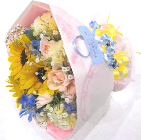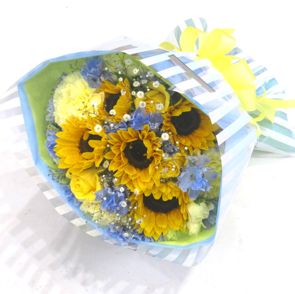【白&ブルー】の清楚で涼しげなブーケ風花束