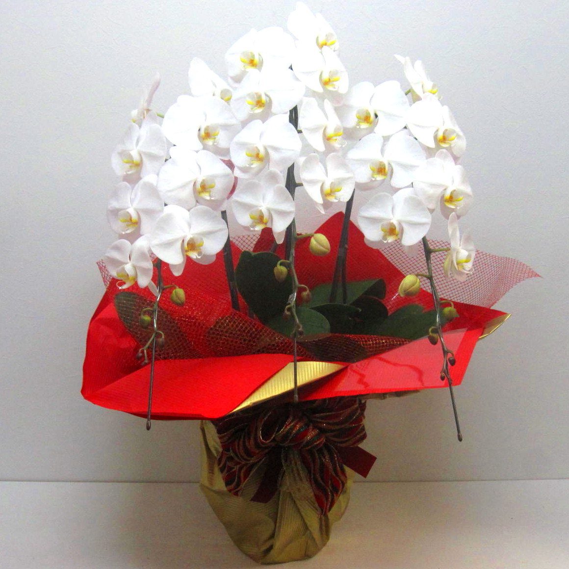 胡蝶蘭(大輪白・3本立ち)・ゴージャスラッピング(金&赤)