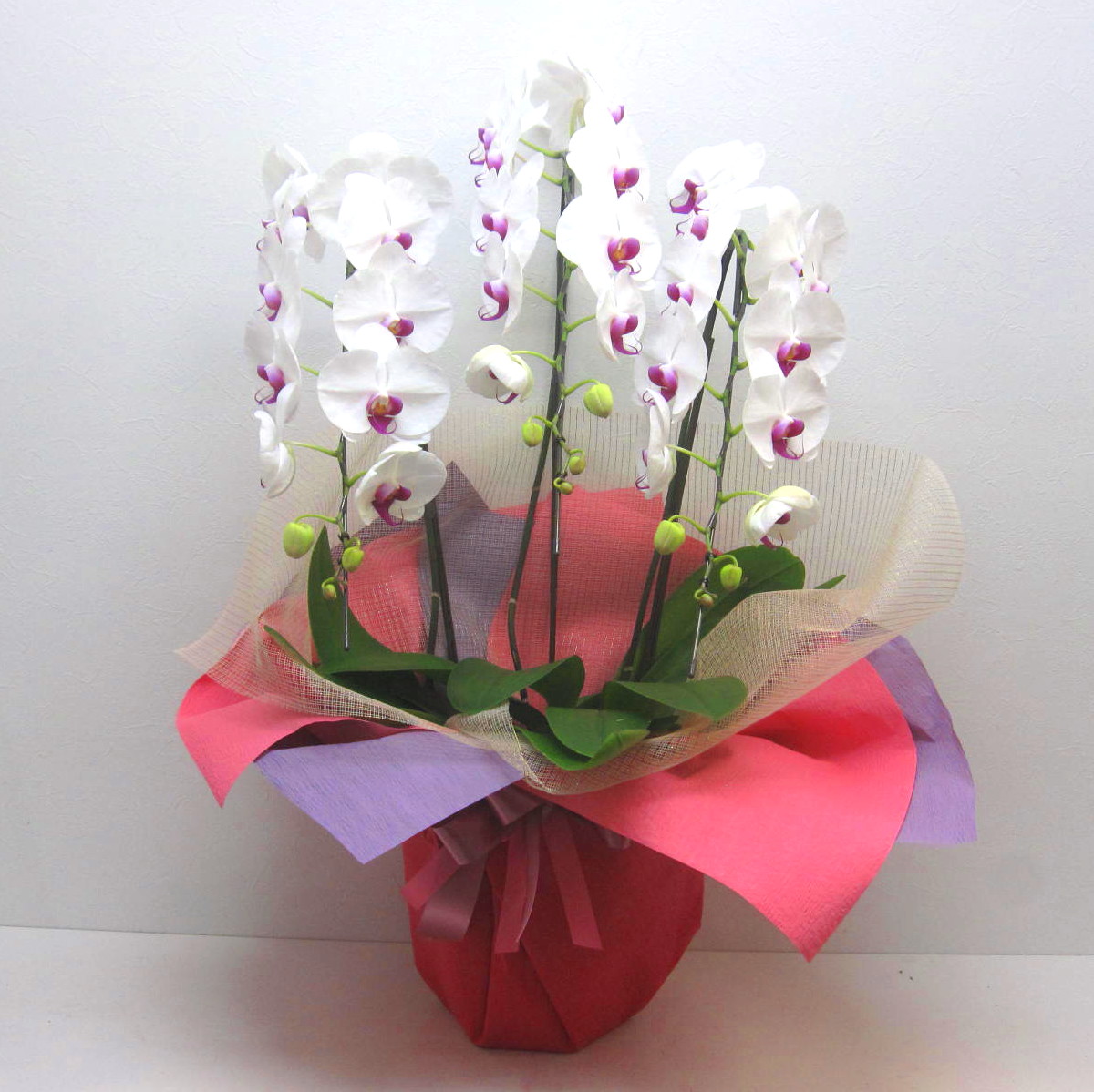 胡蝶蘭(大輪白赤)・3本立ち(36輪以上)