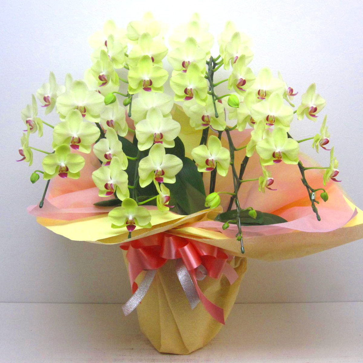 清楚で爽やかな緑色の大輪胡蝶蘭【グリーンエレガンス/3本立ち(25輪以上)】