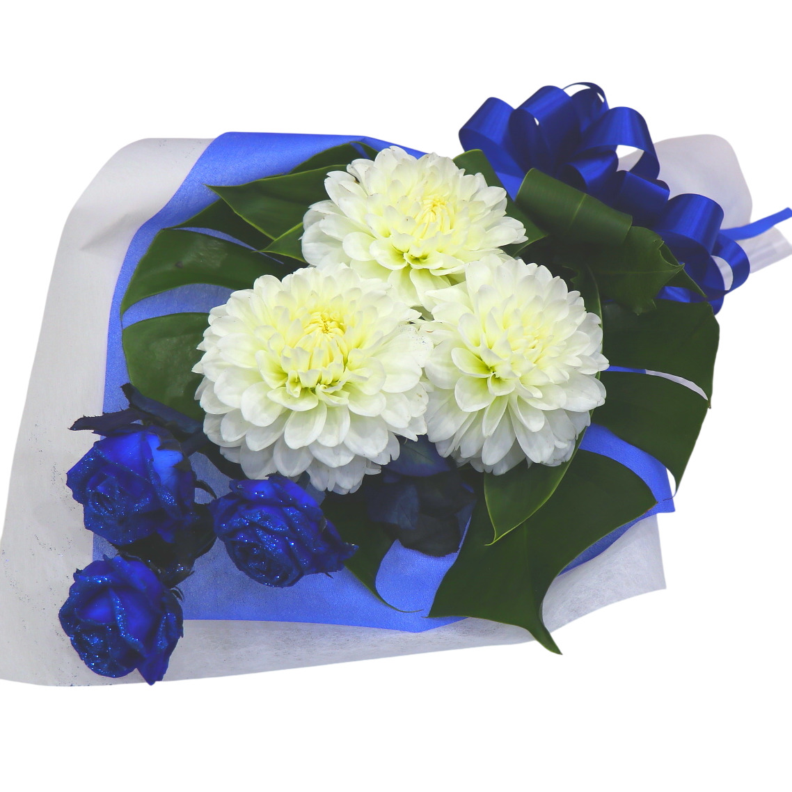 【オリジナル染色】キラキラ青いバラとダリアの花束