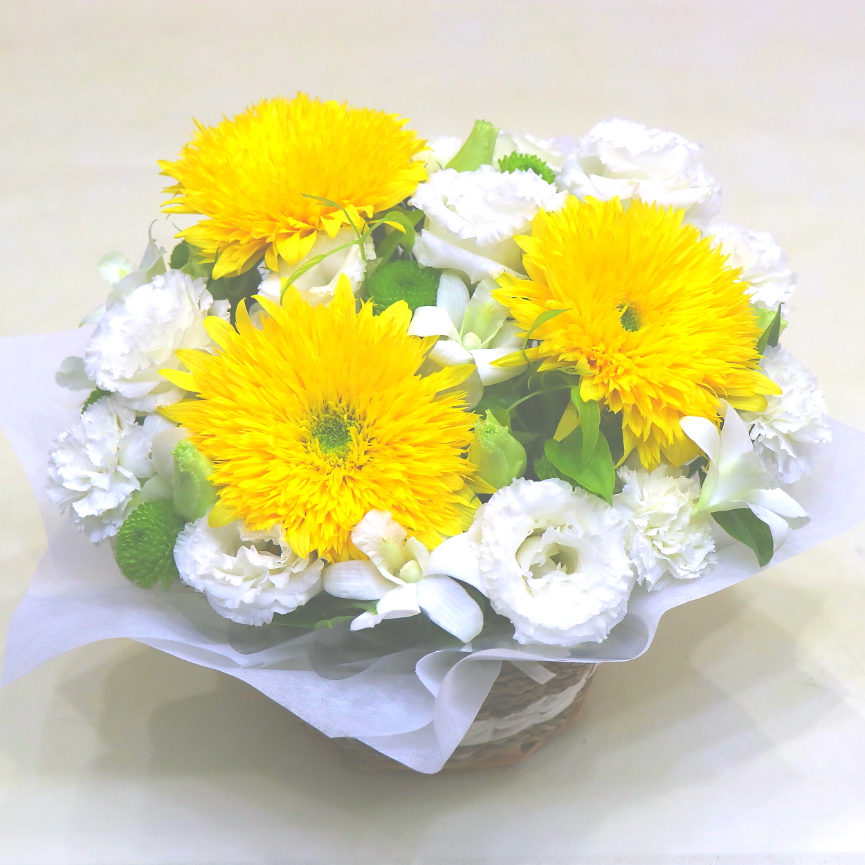 白&グリーン系のお悔やみ花束