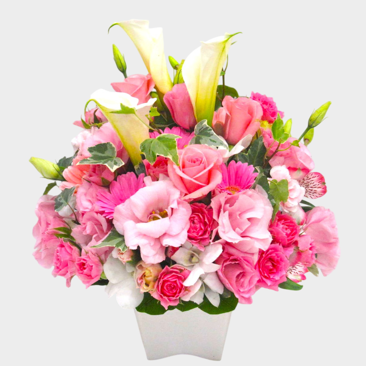 淡いピンクの華やかなグラデーションアレンジメント