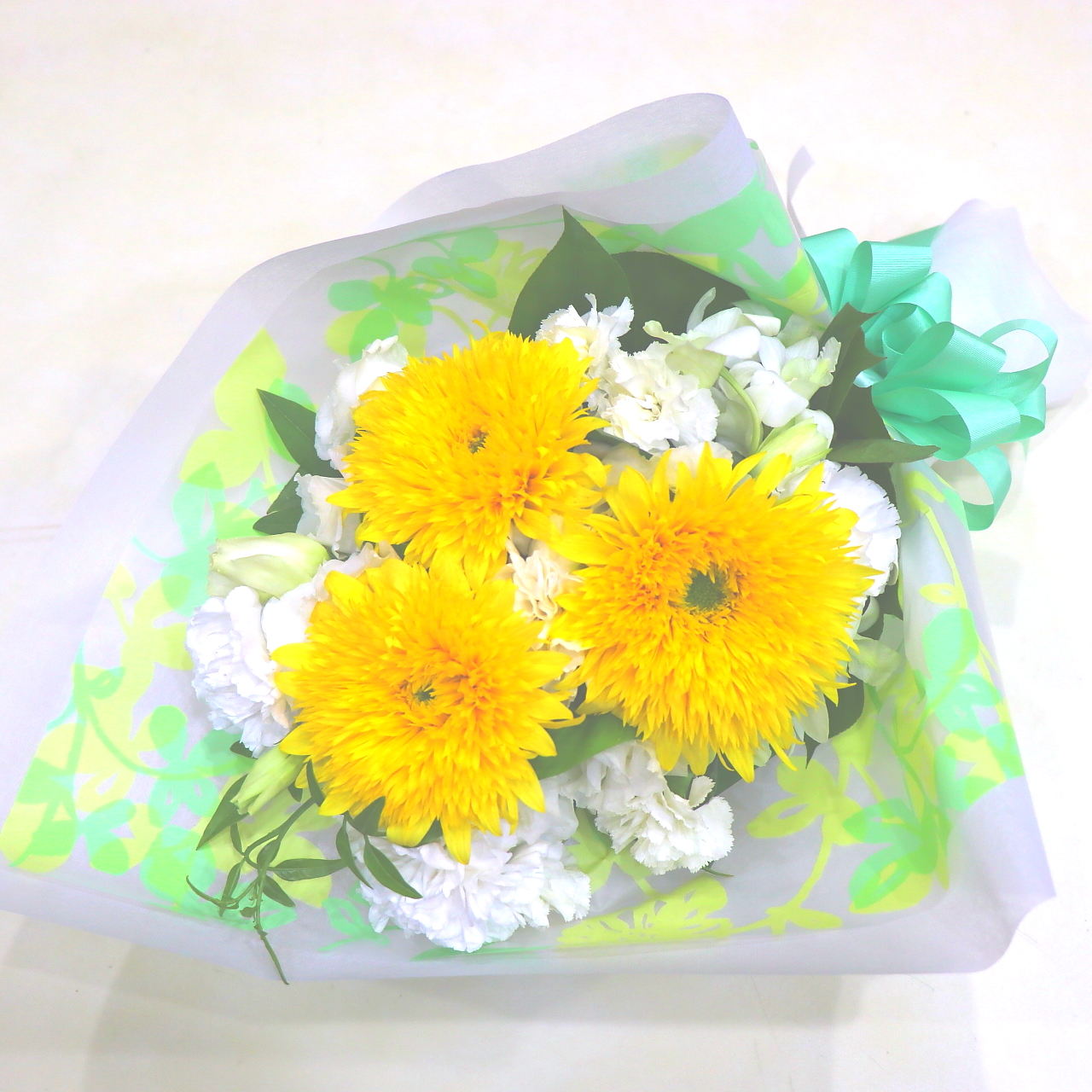 《春のお供え》ピンポンマムを入れた白&グリーン系のアレンジメント
