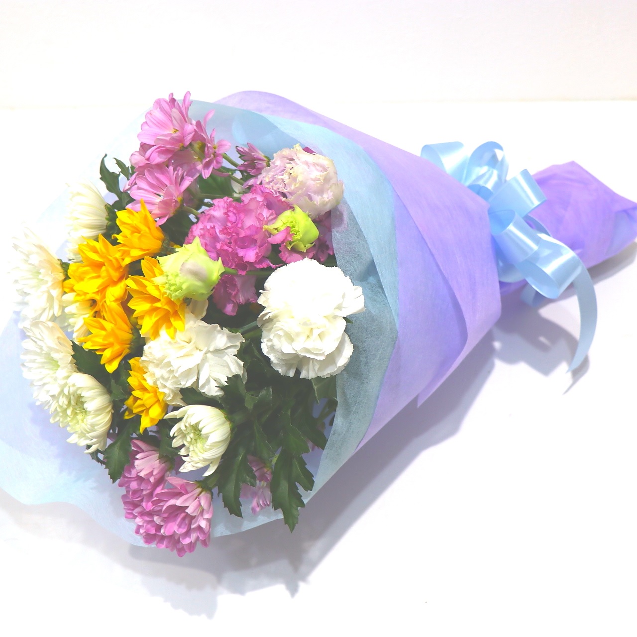 ブルー&パープル系の貴賓漂うブーケ風花束
