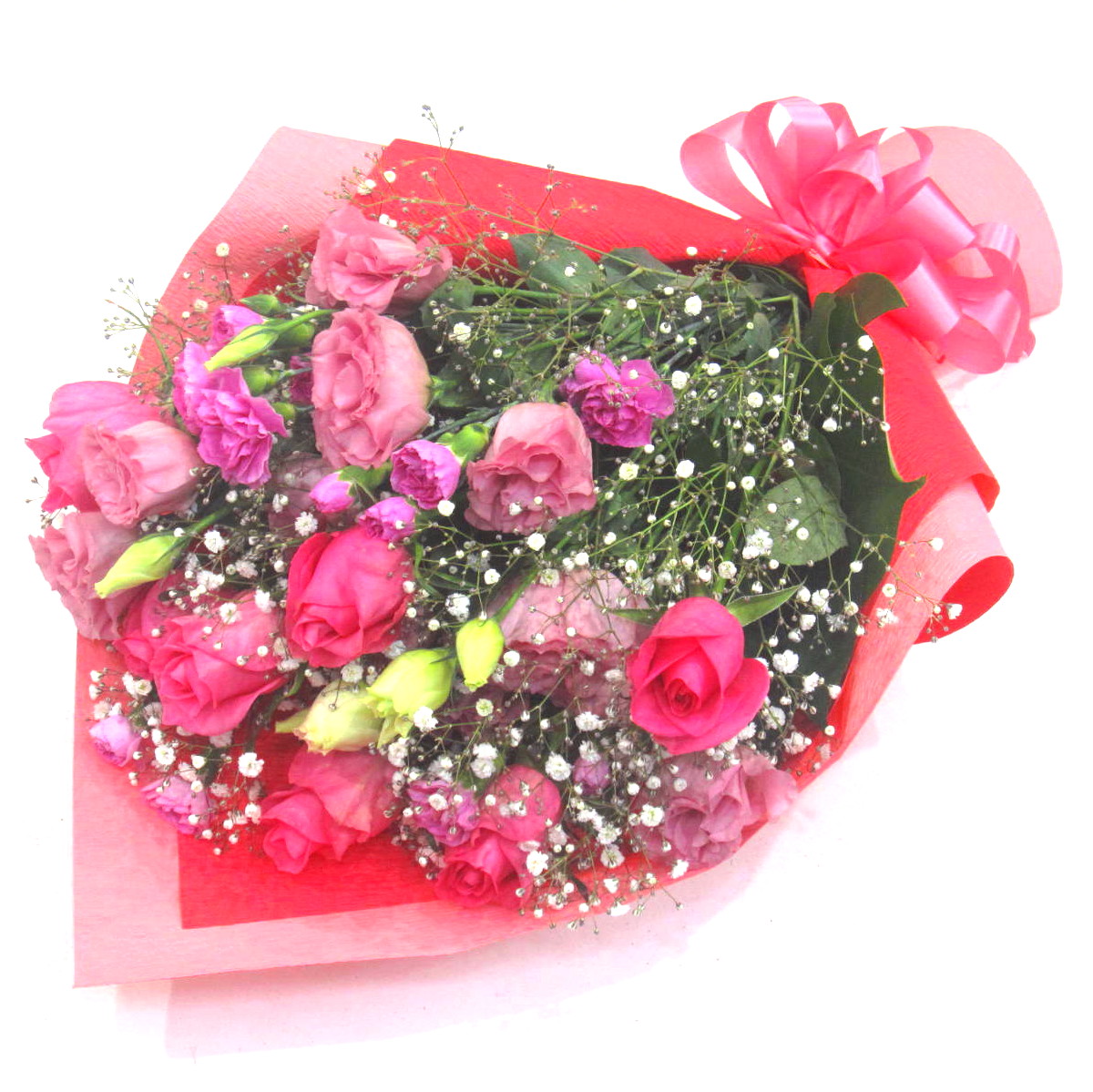 【お誕生日・記念日のギフトに】ピンクバラ10本とかすみ草の花束