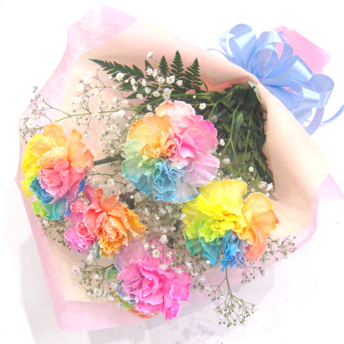 《母の日》パステルレインボーカーネーションとかすみ草の花束