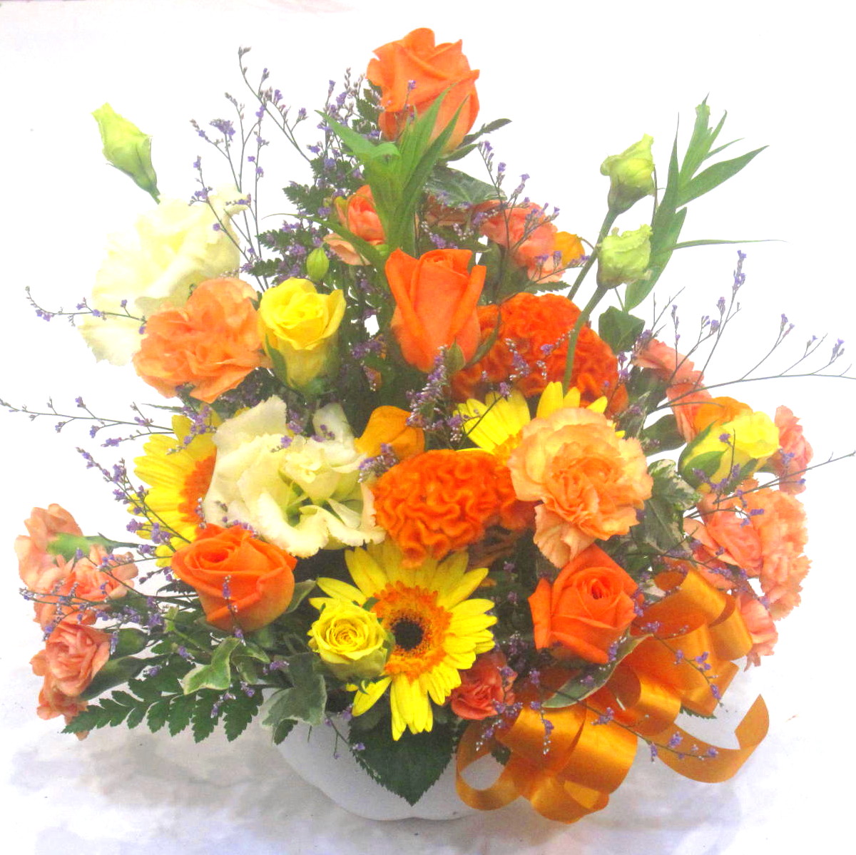 【秋のフラワーギフト】★オレンジリボンの秋色バスケット★