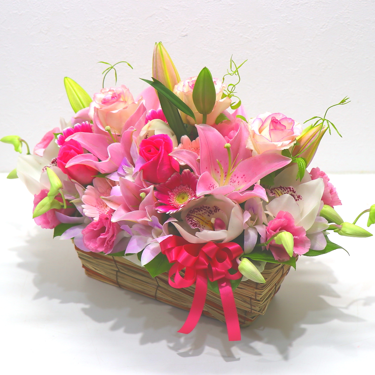 ピンクユリの落ち着いたアレンジメント