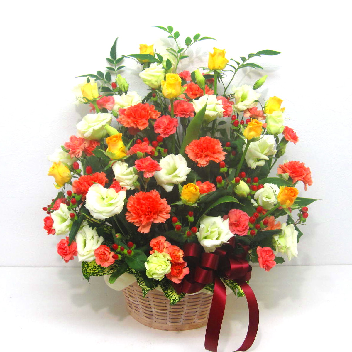 赤系の華やかなアレンジメント