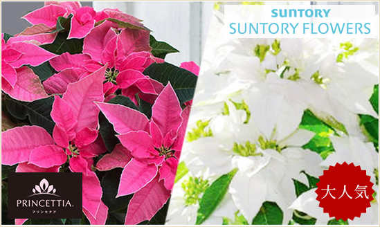 ポインセチア(プリンセチア)サントリーフラワーズが開発した、ポインセチアに代わる新品種「プリンセチア」。白色やピンク色の明るい葉がとても清楚で可愛らしく、お歳暮に人気があります。花持ちも良く、華やかな雰囲気も良いですよ。