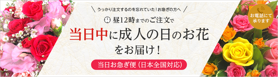 ※下記の商品ボタンをクリックしていただくと、成人の日にふさわしいフラワーギフトを一覧からお選びいただけます。