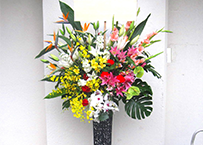 季節の花材を入れた豪華スタンド花で大切な門出を祝福。天候の心配や、お店の中で長く飾っていただきたいなら胡蝶蘭の鉢物や華やかなアレンジメントが良いでしょう。 -