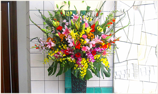 お子様や友人などにはそのまま飾れる春のお花を入れた春らしいアレンジメントが人気です。先生や落ち着いた大人っぽい方にはバラを入れたシックでお洒落な花束がオススメです。また、コンサートの主催者や知人の個展にはスタンド花はいかがですか。アーティストや芸能人の楽屋などには長く鑑賞できる胡蝶蘭の鉢物も良いでしょう。 -