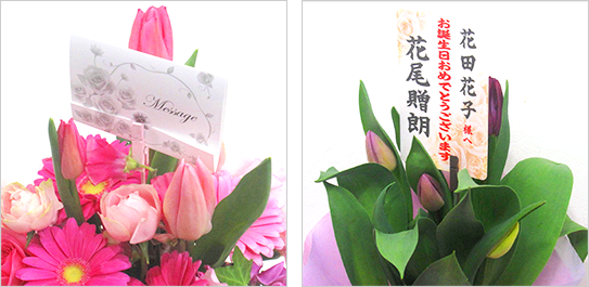 お花と一緒にメッセージカードに言葉を添えれば受け取った方の嬉しさはアップしますよ。