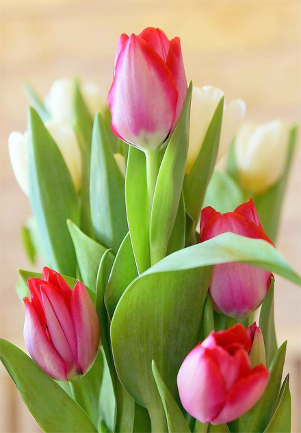 花束やアレンジメント、花鉢など、今が旬のチューリップの入ったフラワーギフトを贈りませんか。